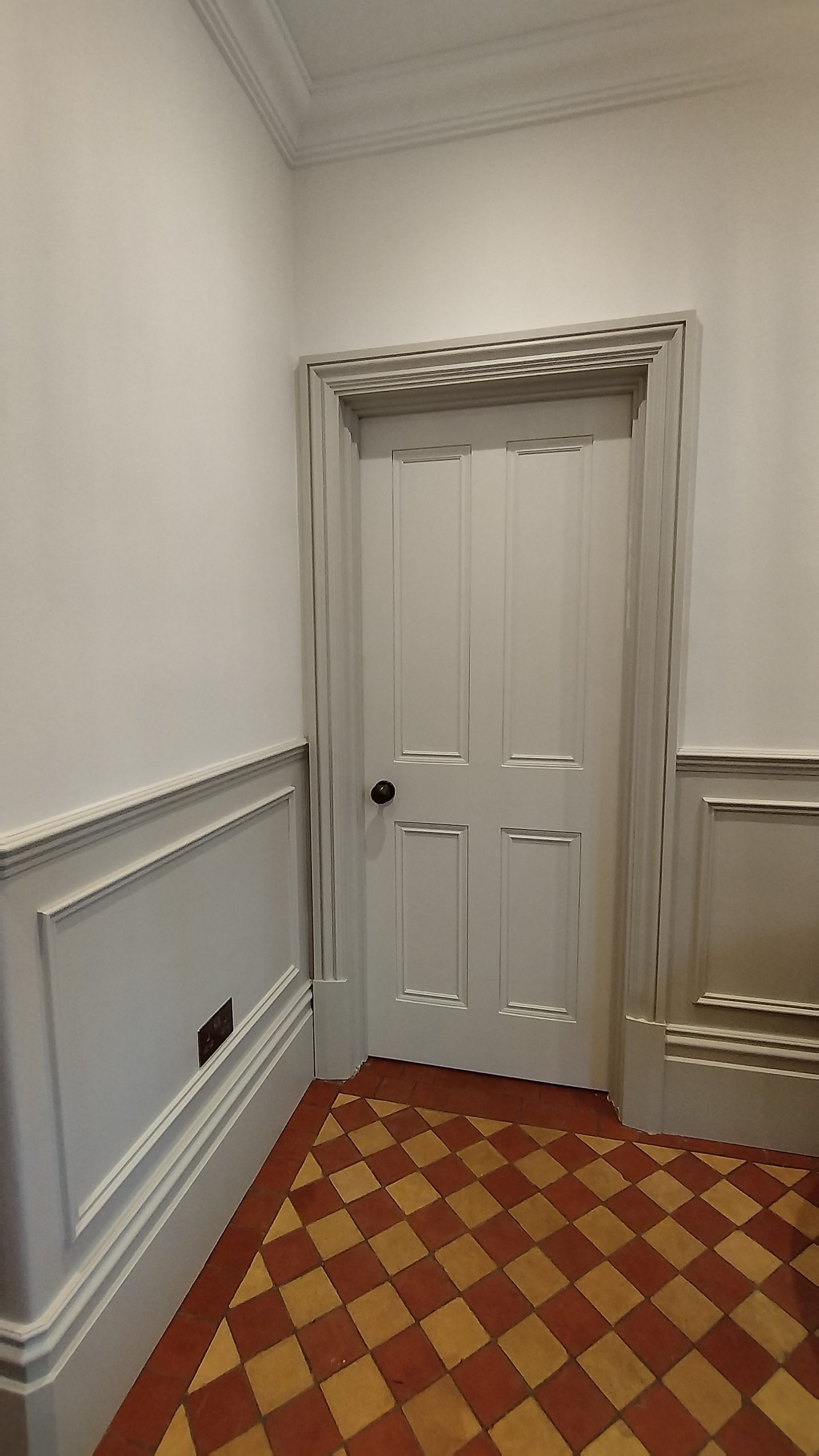 This project involved the spraying of 13 Interior doors for a professional and beautiful finish. Having painted and decorated the property itself for several months this aspect of the project was a sure favourite as it . The doors were removed and were subjected to numerous preparation processes to ensure for a beautiful first class finish. These doors were sprayed with various primer/undercoat trade paints (dependent on previous legacy work undertaken) and then finished in various colours with an enamel paint by Tikkurila (Intact) for a sleek and durable finish.