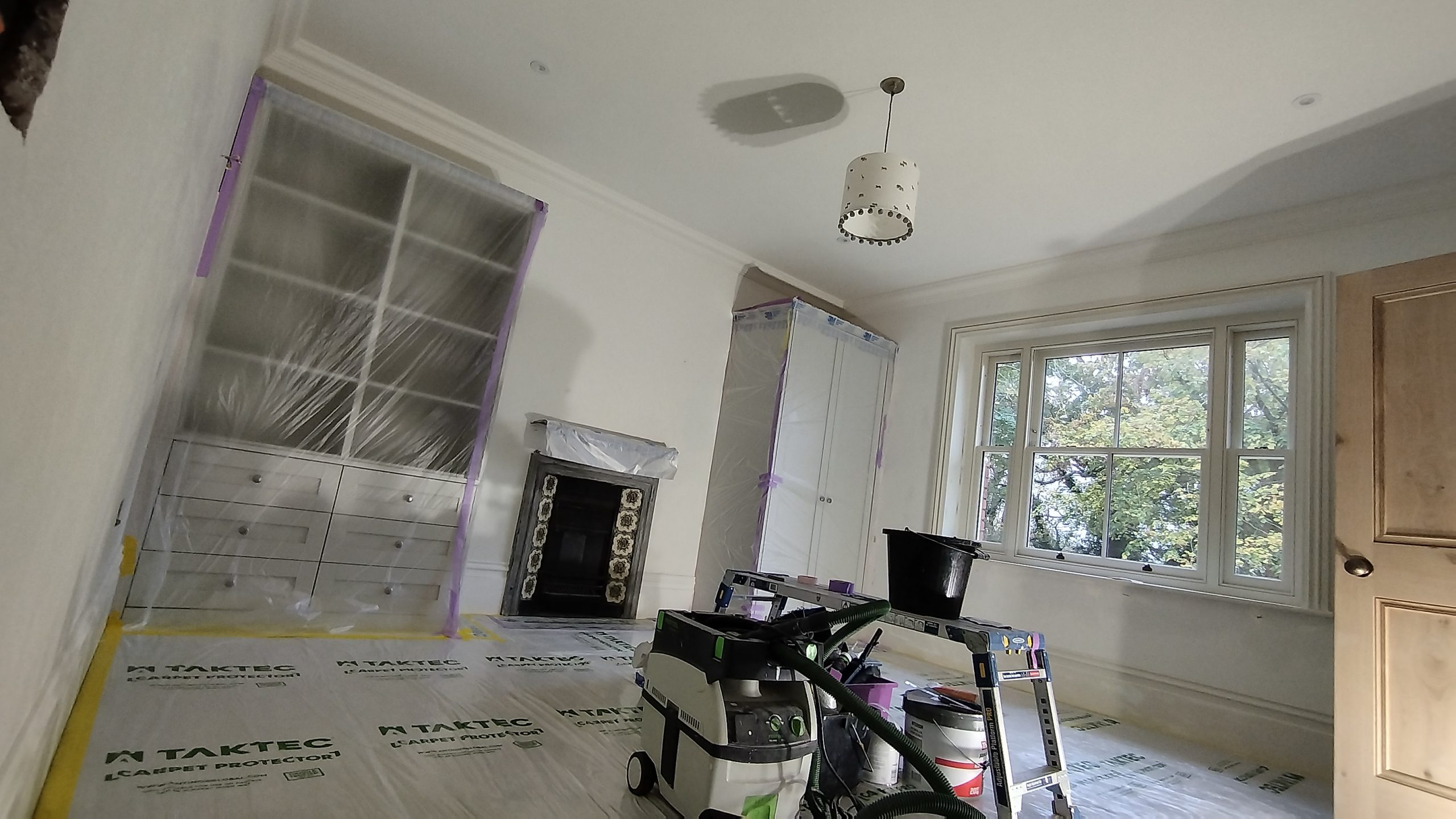 This Bedroom was given the Vitality Creation touch for a repeat client. The Works involved sanding back all wood trim and walls using dustless sanding equipment to ensure for a professional finish moving forward. Wood Trim surfaces were then appropriately prepped and cleaned prior to paint spraying with a HVLP spray unit for a professional high end paint finish. Ceilings were then repainted, followed by painting of the walls to finish. Walls were painted with a breathable paint that is suitable for both lime plaster and gypsum.