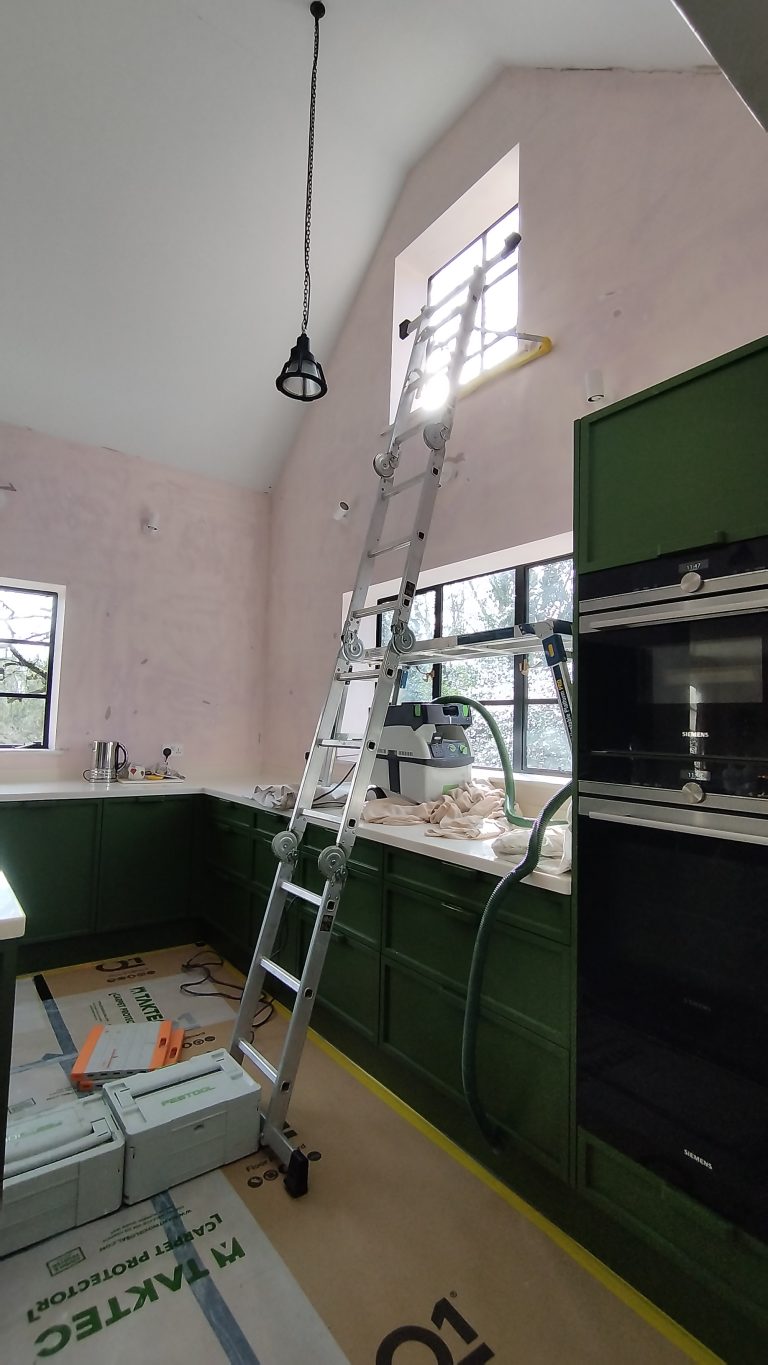 VCD undertook the redecoration of a beautiful open plan kitchen and dining/living room. All surfaces were subject to various preparation/restoration processes before application of suitable trade paints. The kitchen countertop and window frames were resealed alongside painting and decorating Works.